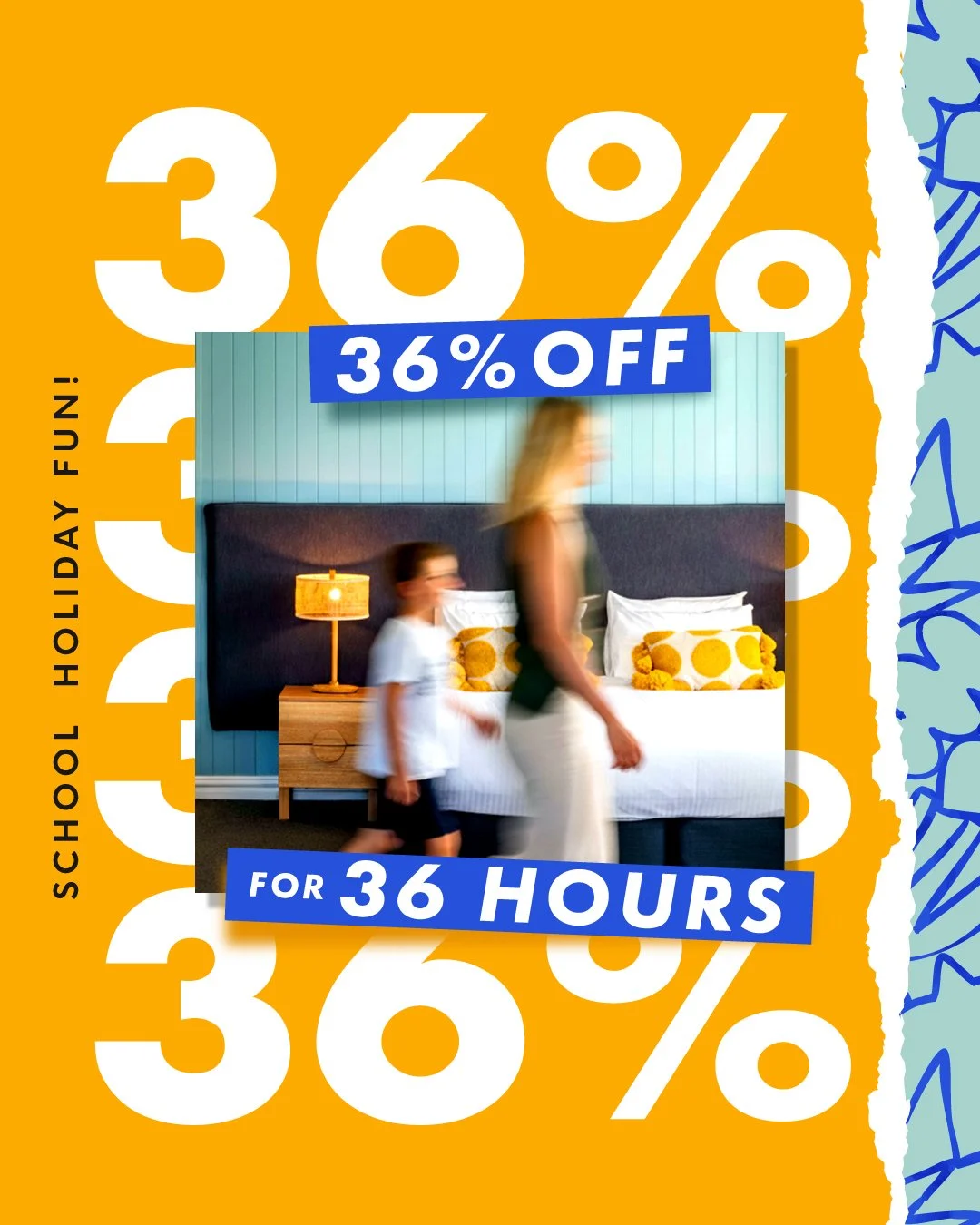 *Starts 9am Saturday 4 April 2026. Ends 9pm Sunday 5 April 2026. 36% off bookings between April 7-17, 2026. Boutique & Bay Rooms. Subject to availability. Prepaid bookings. 24 hours’ notice required to avoid cancellation fee.