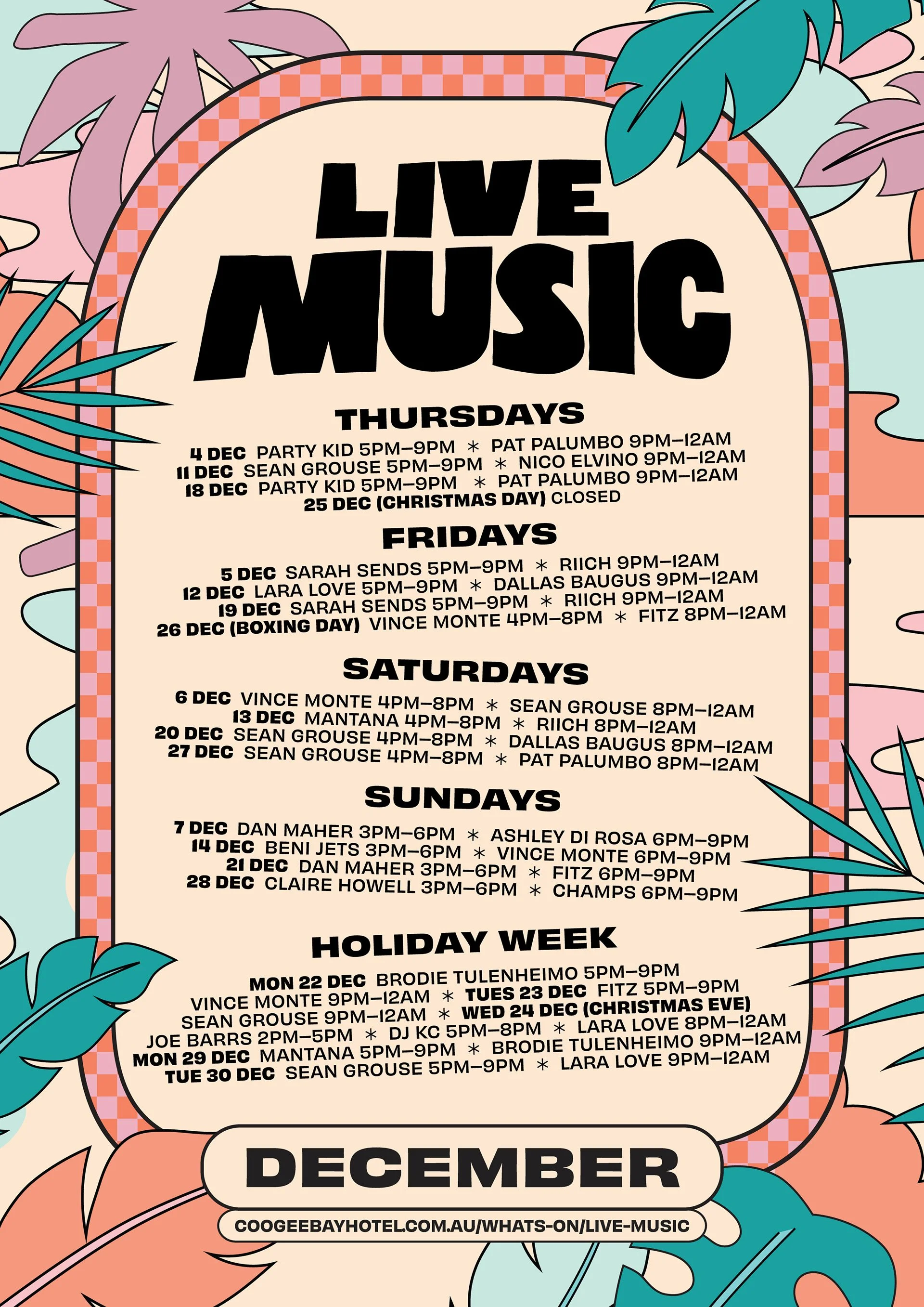 Catch some of the best local and regional acts as they perform all your favourites and cracking originals.